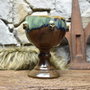 Drink mead, beer or wine in style from this handmade ceramic grail. Carefully handmade and glazed.