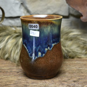 Handmade ceramic cup with matt brown and blue effect glaze