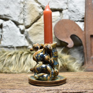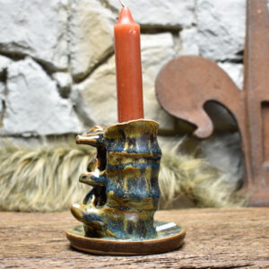 The candle holder is handmade and made from stoneware ceramics. It is fired in the kiln to 1230 degrees. This makes it very durable.