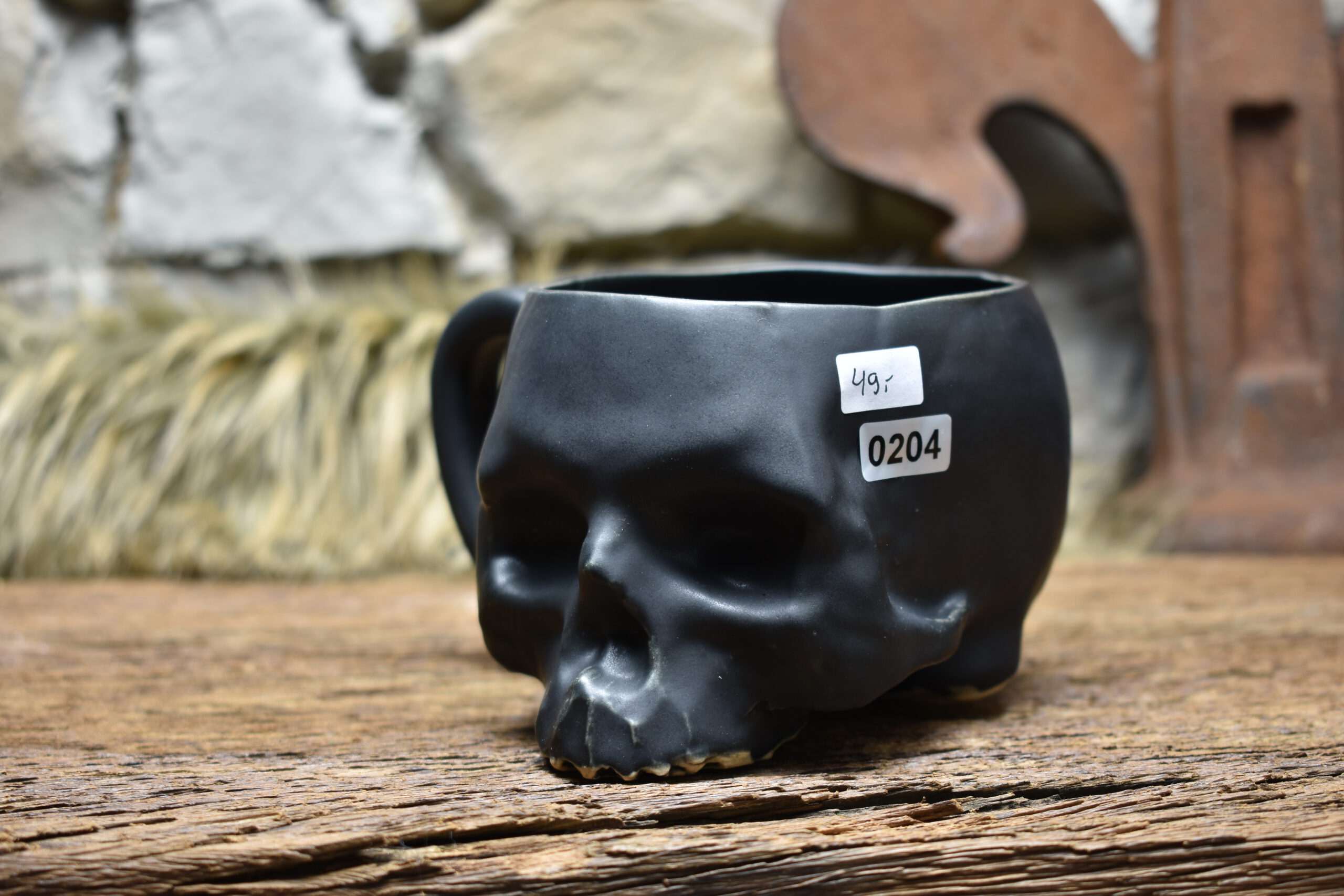 Drink coffee, tea, mead or beer in style from this handmade ceramic skull cup. Carefully handmade and glazed.