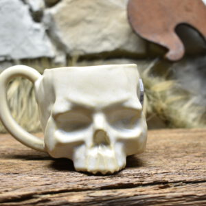 Drink coffee, tea, mead or beer in style from this handmade ceramic skull cup. Carefully handmade and glazed.