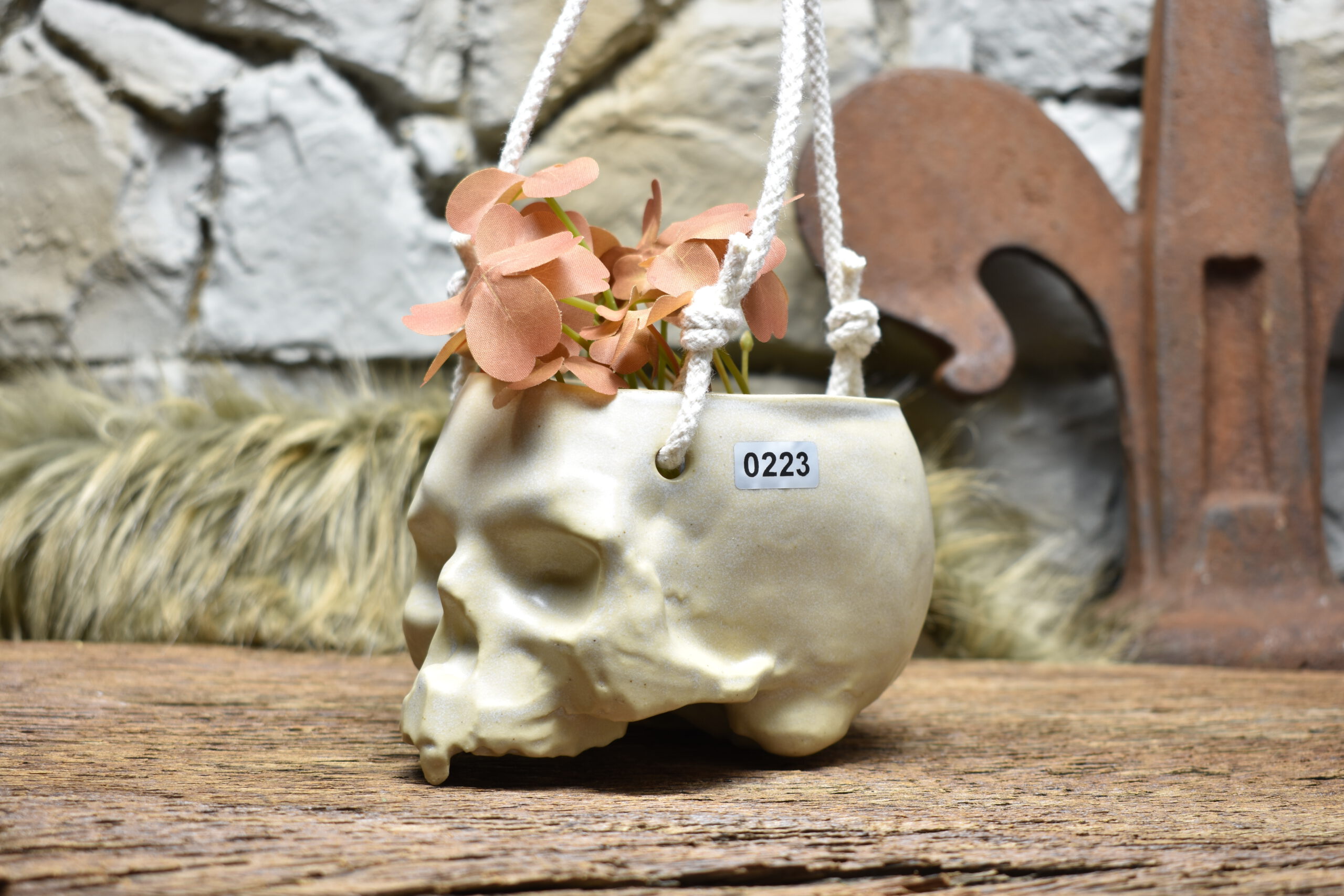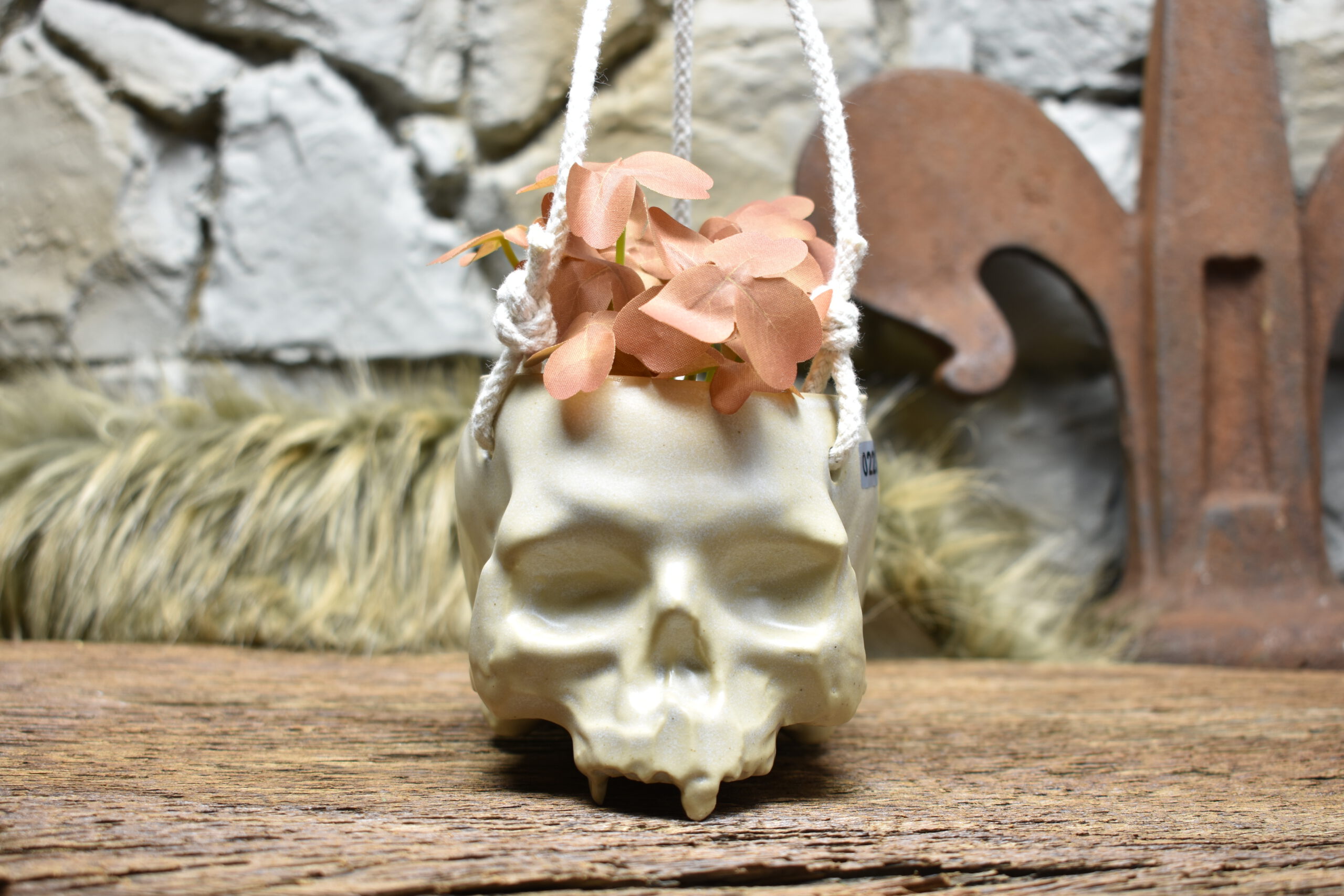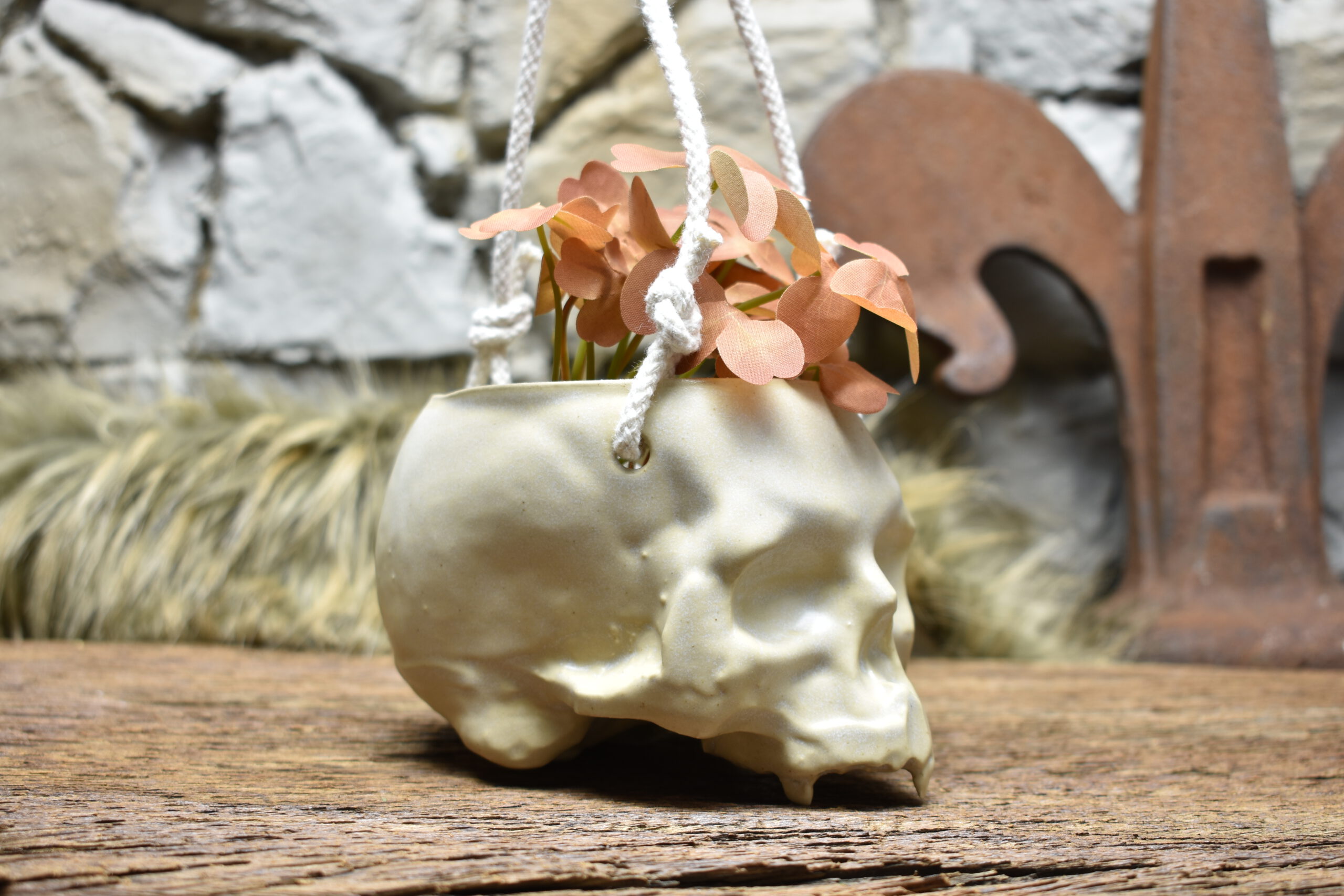 Handmade small ceramic skull hanging pot for plants. Hang your favorite plant in this cute skull plant pot. This skull plant pot is carefully handmade and glazed on the inside and outside. Mugs&Myths products are handmade in the Netherlands. The skull plant pot is glazed by hand and fired in the ceramic kiln. It hangs on sturdy jute rope.