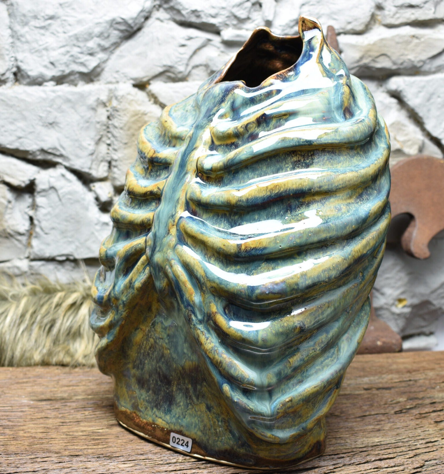 Handmade ribcage vase made from stoneware ceramics and glazed with a effect glaze.