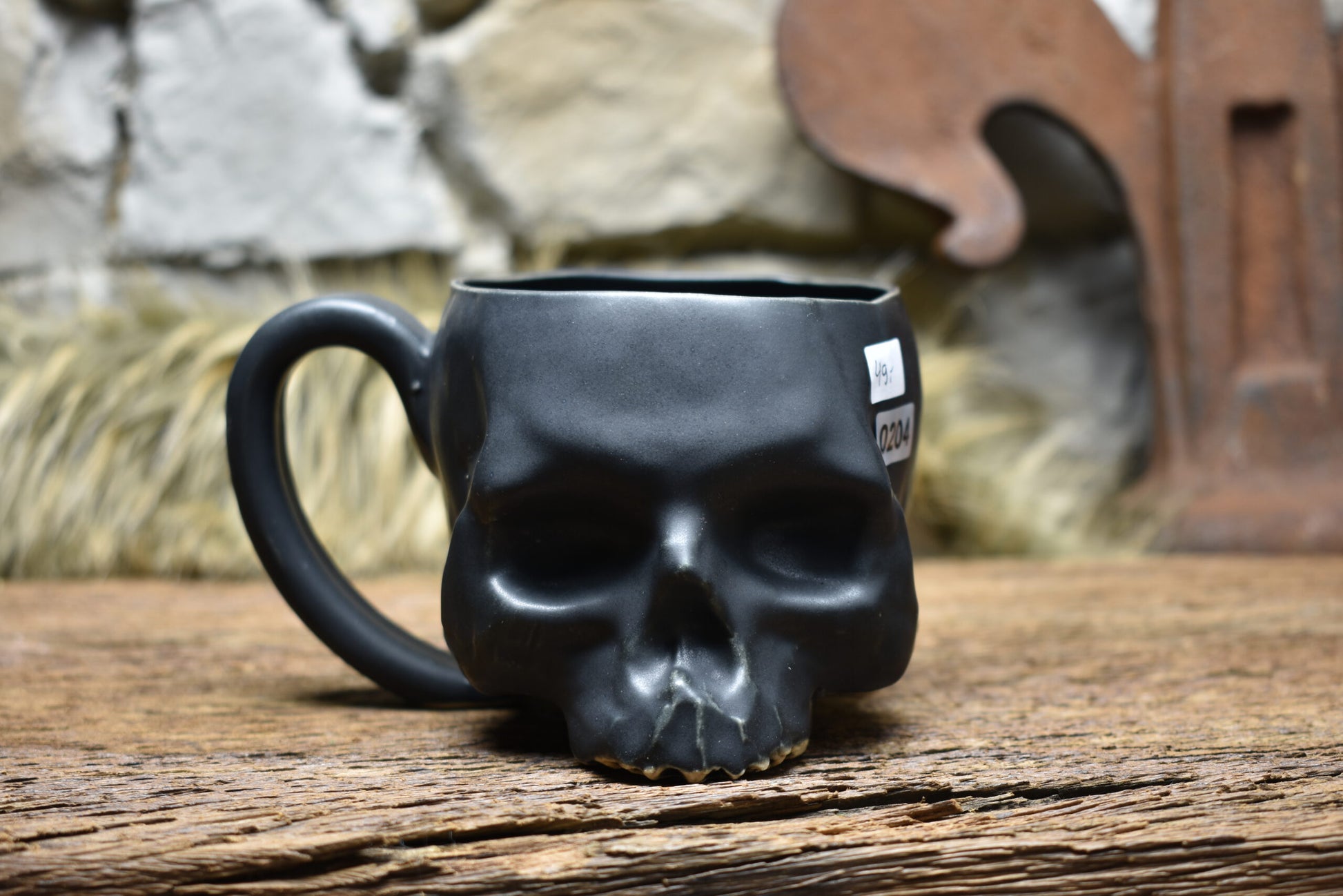 Drink coffee, tea, mead or beer in style from this handmade ceramic skull cup. Carefully handmade and glazed.